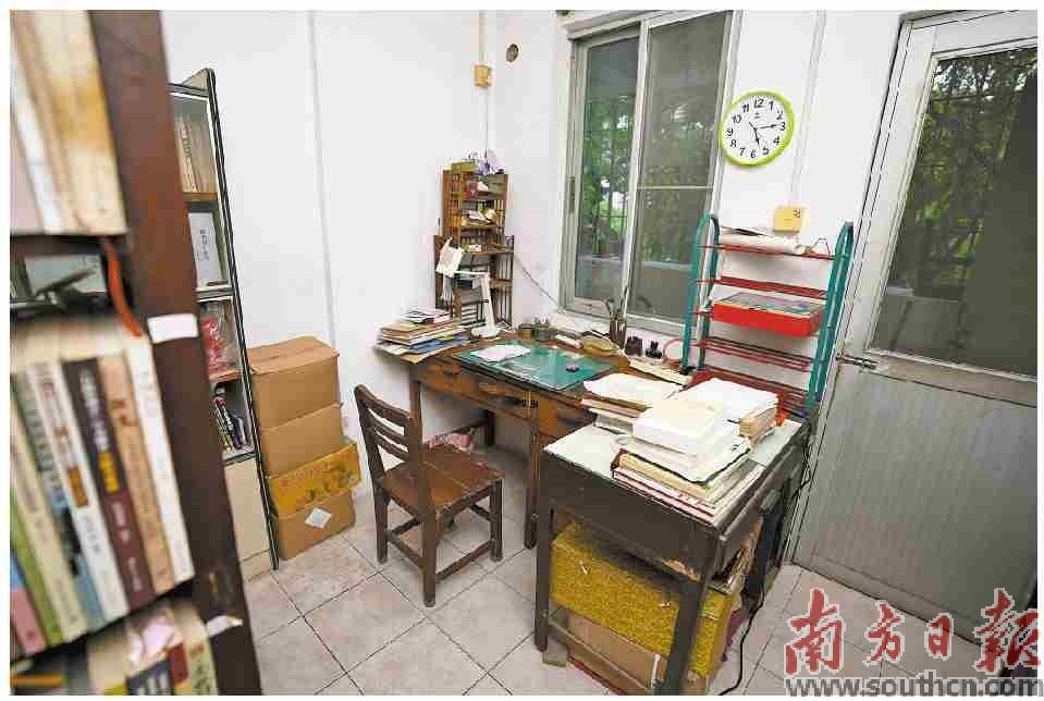 10平方米的空间,“挤进”了3排顶天立地的书架。书籍、手稿、资料、剪报,从脚下直到头顶,堆满了小小的书房。
