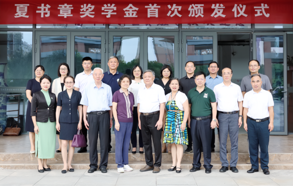 夏纪梅女士、夏纪康先生及张晓穗女士为获奖同学颁发“夏书章奖学金”的首笔奖学金