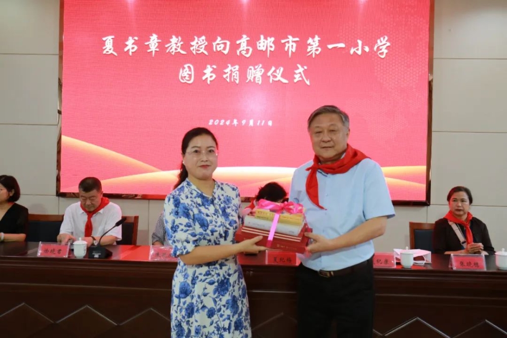 除了奖学金,此次活动中,夏书章教授子女还将父亲“宝藏书房”中的一大箱图书,捐赠给父亲的母校——高邮市第一小学,以实际行动回馈桑梓,激励后学。