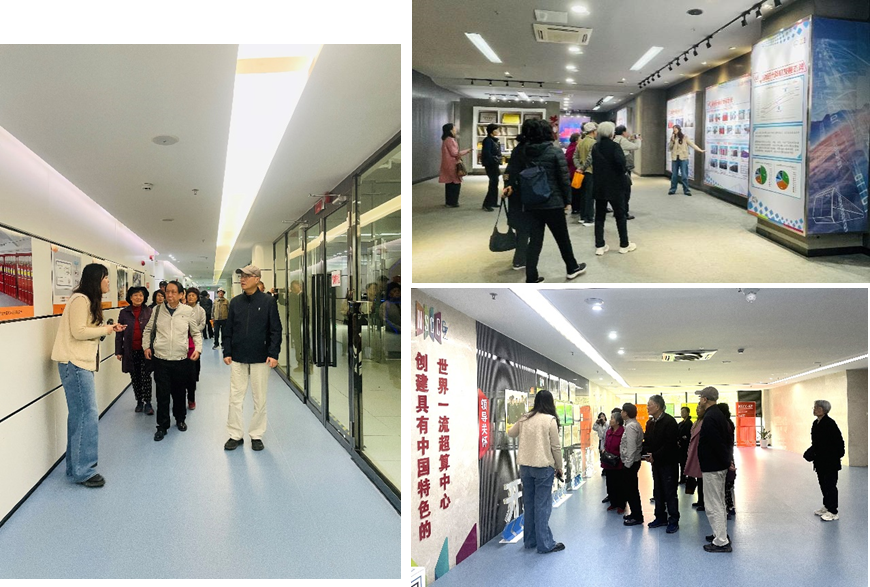 在“天河二号”国家超级计算广州中心,大家通过观看视频介绍、工作人员讲解、走进主机系统机房,实地感受“天河二号”的科技魅力,了解超算中心的发展历程及其在科研领域的实际应用。荣休教师对超算中心的高效运行及其前沿科技成果深感振奋,不禁连连赞叹。