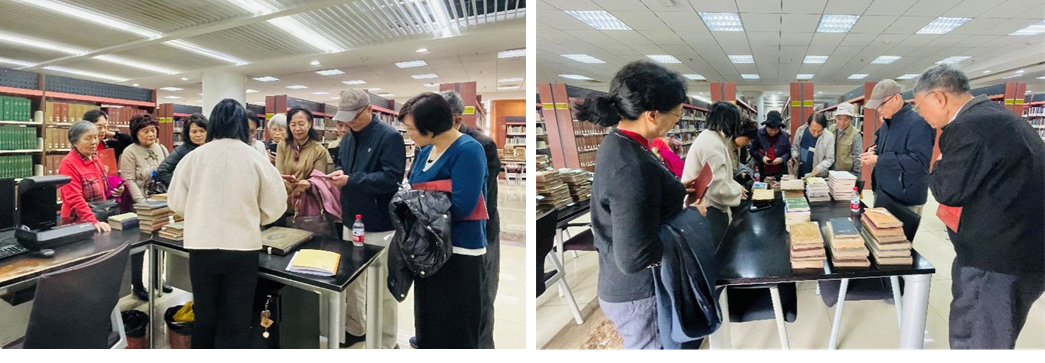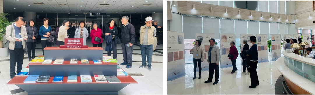 在东校园图书馆,荣休教师参观了一楼专题展览和特藏馆。特藏馆喜乐斯藏书由哈佛大学哈佛学院图书馆捐赠,图书馆吴伟婷老师向荣休教师展示了装帧精美的古书和历史收藏价值,大家对珍贵的古籍爱不释手。为这次参访,热情专业的吴老师特别整理了政务学院老一辈学者的著作。荣休教师们仔细翻阅,充满了感动和回忆,深刻感受到了学校学术资源的深厚积淀和在文化传承方面的用心与努力。