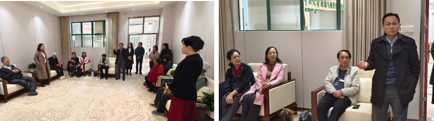 随后,荣休教师来到政务学院楼进行了参观和座谈交流。学院领导陪同参观了教学课室、会议室、教职工办公室、母婴室、学科发展陈列室、教职工健康体验中心、文科实验室及公共空间等。