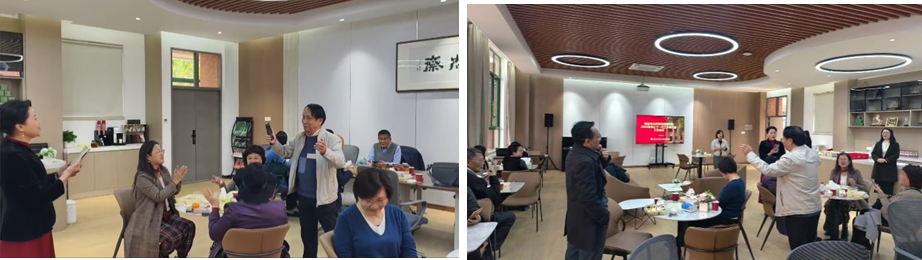 最后,在政务学院温馨的教职工之家“三问斋”举行了座谈交流,共商学院未来发展。现场通过短视频回顾了近一年来荣休教师开展的各项活动,展现了荣休教师对学校、学院工作的支持和充满活力的精神风貌。座谈会由谭英耀副书记主持。