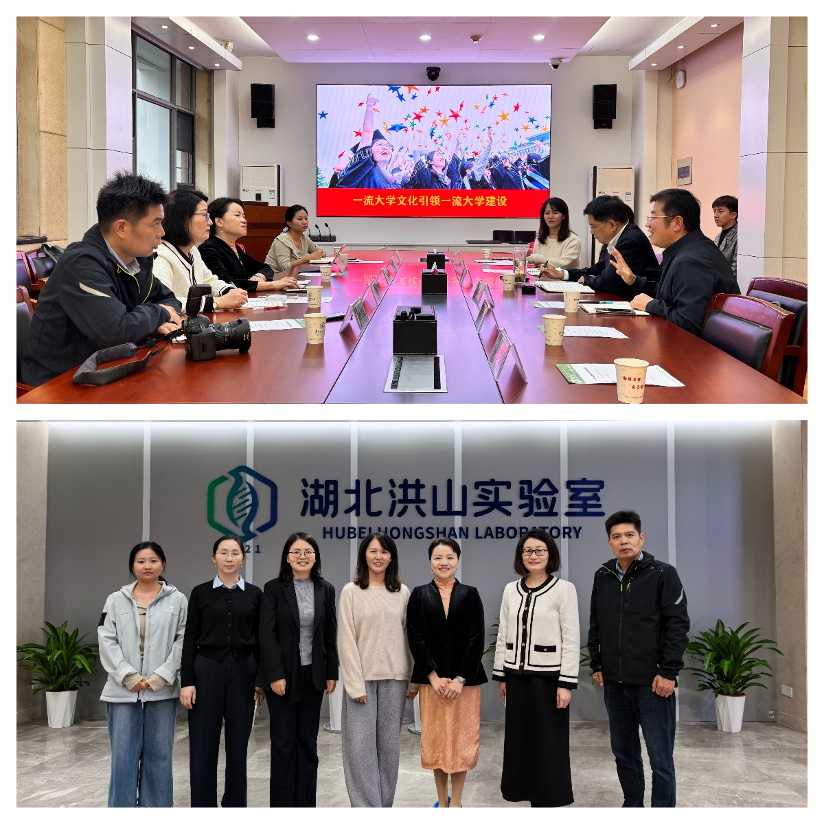 当日下午,调研组前往华中农业大学公共管理学院交流,华中农业大学党委常委、组织部兼统战部部长李向东,公管学院党委书记周向阳,文化建设办公室主任冯楠,公管学院副院长丁艳华等参加座谈。李向东部长介绍了华农基本情况,冯楠主任分享了华农文化育人实践,周向阳书记介绍了公管学院构建特色公共管理学科体系的经验,分享了学院以高质量党建引领事业发展的实践路径。双方围绕学院文化品牌塑造、党建引领学科发展等主题展开了热烈讨论。座谈会后,调研组参观了学校博物馆、湖北洪山实验室。
