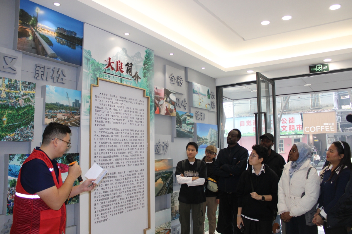 在座谈交流环节中,大良街道党工委委员谢新展、党建办主任欧阳茵等街道代表与研学团围绕基层治理实践、干部教育培训等议题展开对话。学院党委书记罗晶在发言中提到,本次的座谈不仅是校地之间的对话,更是不同国家治理经验的交流,希望此次交流能让国际学生深入了解中国基层治理的实践路径。随后,研学团结合本国实际,就基层党校的教育模式与人力资源管理等问题踊跃提问,现场讨论热烈、思想碰撞不断。此次参访让研学团沉浸式观察中国基层治理运行逻辑与地方实践,为中外治理经验的对话与互鉴搭建了有效平台,也为后续更深入的校地协同与国际化人才培养奠定了良好基础。