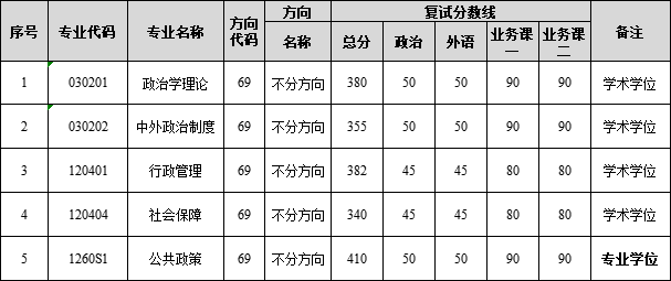 1.我院各专业复试分数线如下: