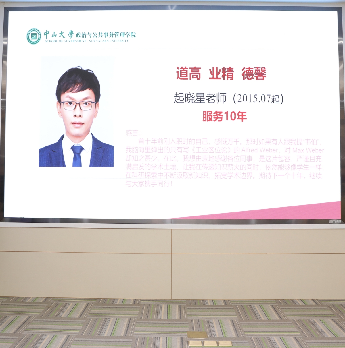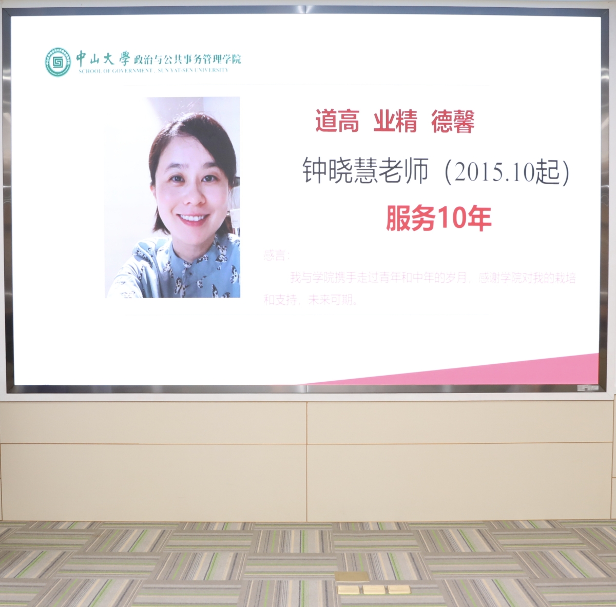 为表彰教职工的忠诚服务,传承学院“道高、业精、德馨”的优良敬业精神,学院设置了服务纪念奖。共有4位教职工获得“服务10周年纪念奖”,5位教职工获得“服务20周年纪念奖”。他们分享了自己的深情感悟,表示在学院的岁月是人生中最珍贵的一段历程,感恩前辈的悉心指导、同事的暖心相伴。同时,也向青年教职工寄予深切厚望、送上美好祝愿,衷心期盼学院在大家的共同努力下,蒸蒸日上,越来越好。