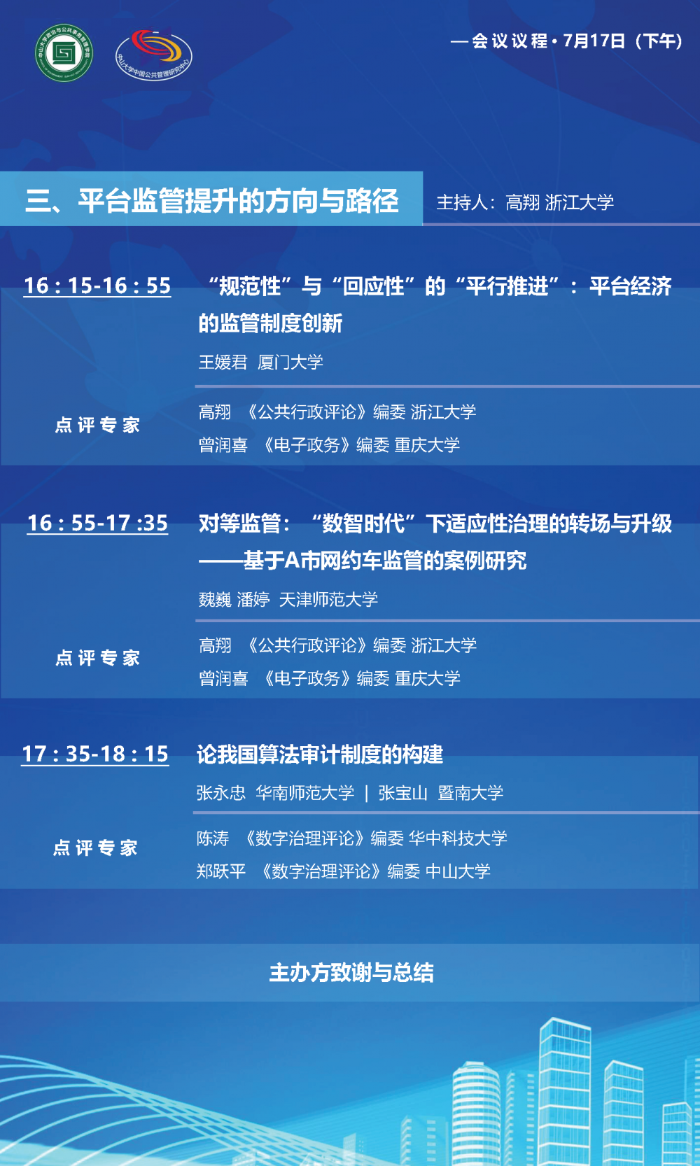 导航痕迹 首页 数字治理工作坊(2022)——平台经济与创新监管 数字治理工作坊(2022)——平台经济与创新监管 数字治理工作坊(2022)——平台经济与创新监管 主题 数字治理工作坊(2022)——平台经济与创新监管 活动时间 2022年07月17日 09:00 - 2022年07月17日 18:30 活动地址 william威廉英国广州校区南校园文科楼501室 附件 数字治理工作坊(2022)——平台经济与创新监管会议议程.pdf